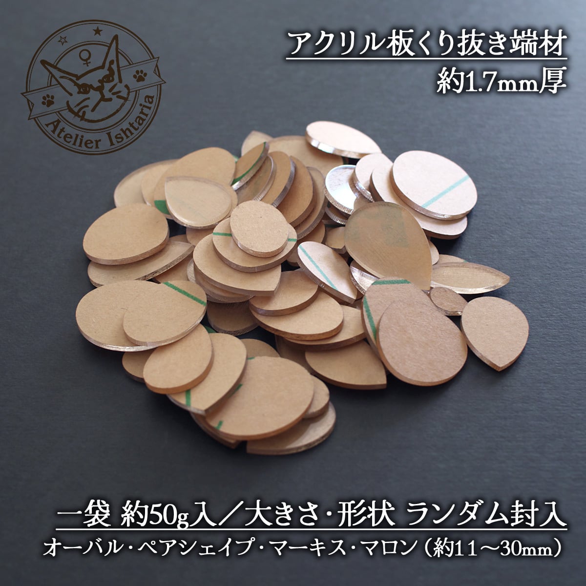 「石磨き用テンプレート」の制作過程で生まれた副産物です。廃棄するには惜しく、クラフト素材としても十分に活用できると感じたため、お求めやすい価格でご提供しています。